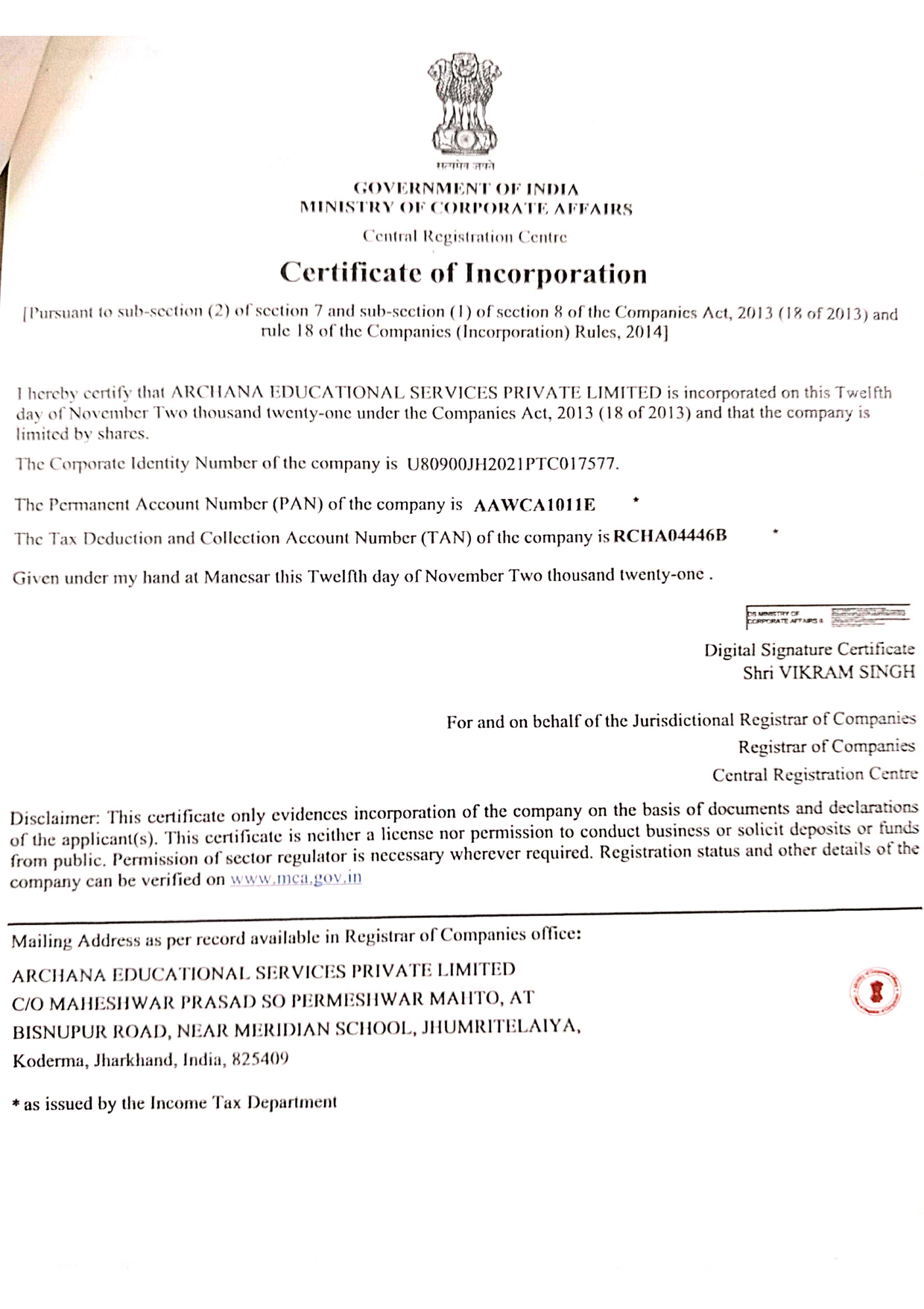 Certificate Of Incorporation