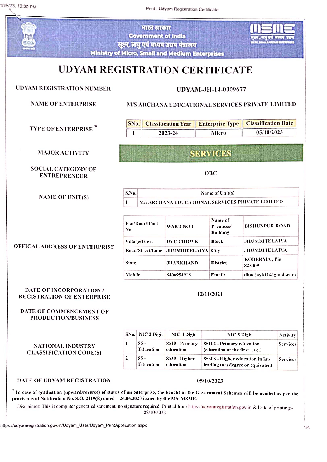Udyam Registration Certificate